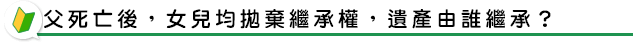 如先順序之子女均拋棄繼承權,依民法第一千一百七十六條第五項規定:「第一順序之繼承人,其親等近者均拋棄繼承權時,由次親等之直系血親卑親屬繼承。」即由被繼承人之孫子女,與配偶按人數平均繼承;