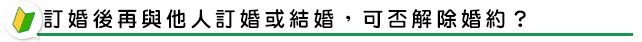 婚約並沒有強制性,依民法第975條規定,婚約不可請求強迫履行,因此如當事人之一方不履行婚約,一方不可以向法院請求他方履行婚約。但如訂婚當事人之一方於訂婚後,再與他人訂婚或結婚者,顯見已無結婚的誠意,他方自可依法解除婚約。又如訂婚後他方再與他人訂婚,則前後兩訂婚仍然有效,前訂婚的當事人並無請求撤銷後訂婚及阻止結婚或撤銷結婚的權利。再如訂婚後他方再與他人結婚,則後結婚仍然有效,縱使先訂婚,仍然不可再與他方結婚,否則即屬重婚,其婚姻為無效,並構成刑法第237條重婚罪,依法可處五年以下有期徒刑。