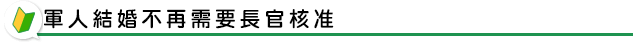 為因應時代潮流,在未來軍人結婚,無須在經過上級長官的同意了。過去的「軍人婚姻條例」已於十一月二十二日下午三讀通過,確定廢止。未來軍人結婚,皆回歸「民法規範」,不必由單位主管核准。